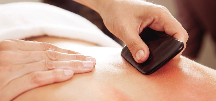 Guasha involves coetaneous stimulation through repeated pressured strokes over lubricated skin with a special smooth edge instrument. Guasha treats chronic and acute conditions of respiratory and digestive disorders. The patient is expected to experience immediate relief from pain, stiffness, fever, chill, cough, nausea and other symptoms.